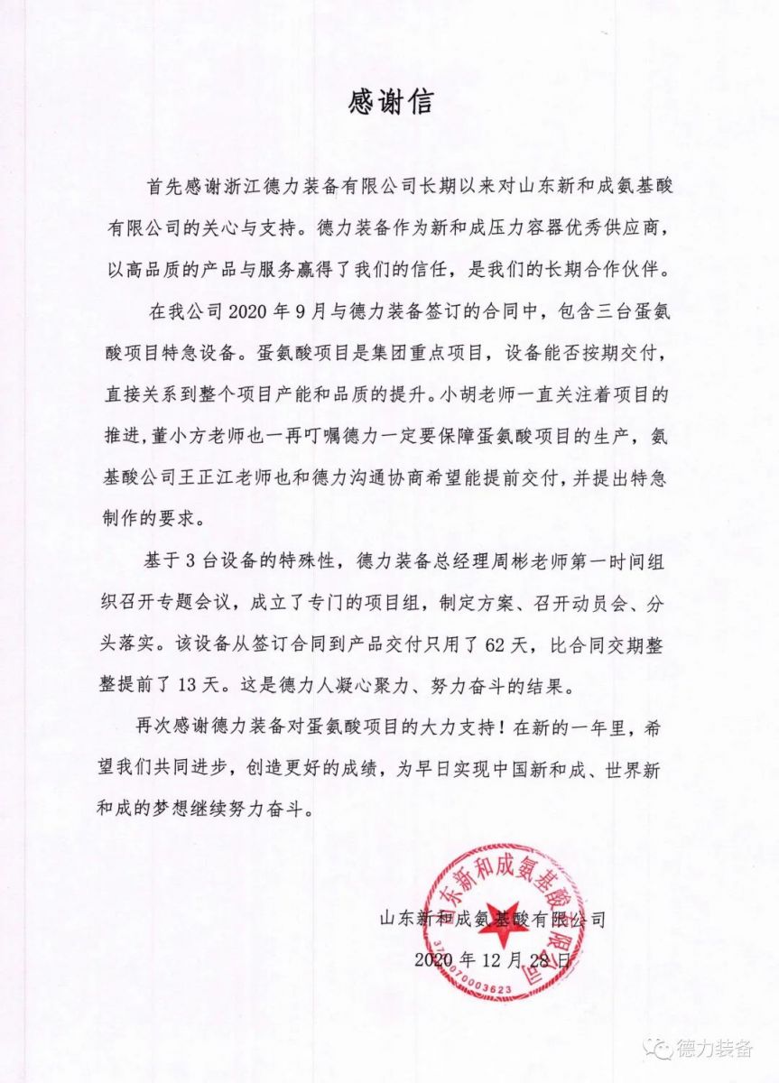 “十三五”期間,在集團和各兄弟單位的大力支持下,在德力人的共同努力下,公司實現了“浙江的德力裝備”的目標。在十四五期間,公司也將緊隨“世界新和成”的發展步伐,朝著“中國的德力裝備”努力奮進!